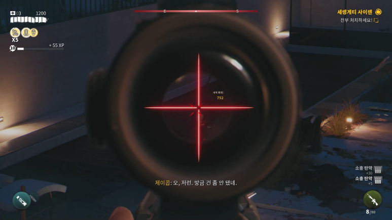 자 2층에서 총 영점 조절 맞추라고 연습하라고 기회를 주네요